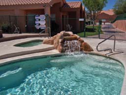There is a private gated pool & hot tub on site, plus there are full usage rights at the Mesquite Vistas Country Club which has a large outdoor pool, hot tub, weight room, tennis, pickle ball, horseshoes, basketball, & many other activities. Out your back door Masters Villas has their own private tee boxes at the Oasis driving range & the resort furnishes free all the practice range balls you can hit.
